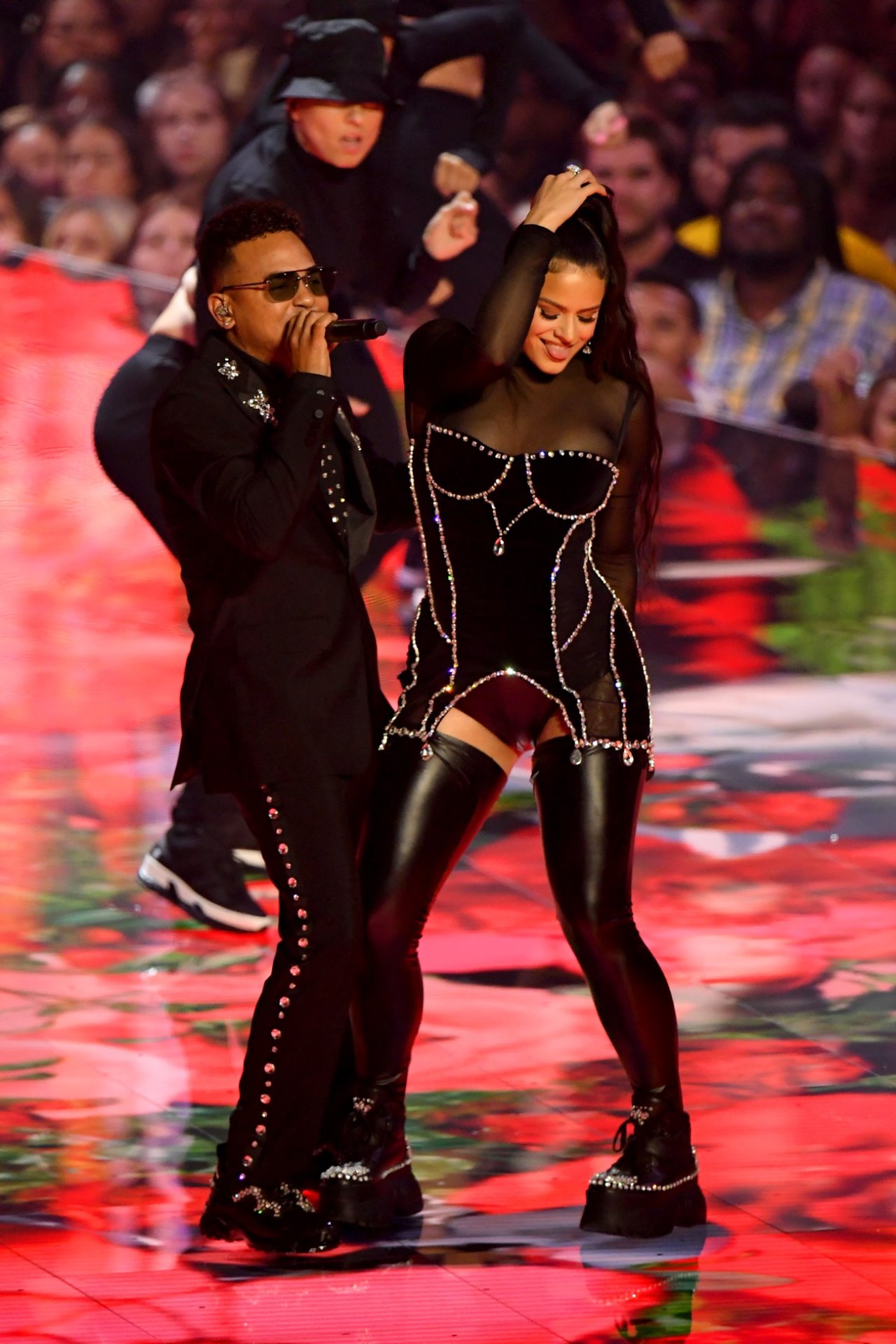 Ozuna y Rosalía cantando "Yo x ti tu x mi" en los premios VMAs de este mismo año, celebrados en Nueva Jersey (EEUU)